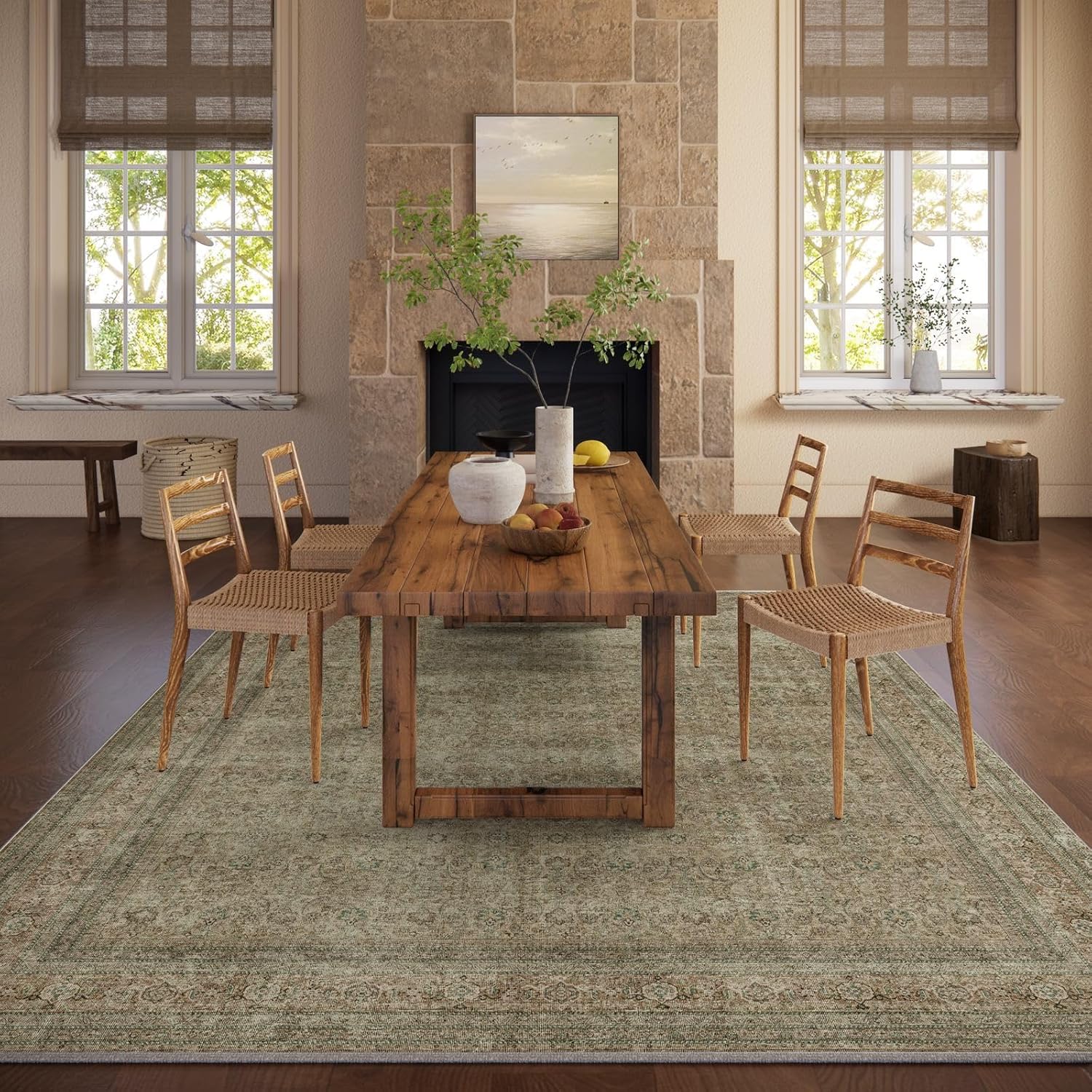 Washable Area Rugs for Living Room: 5x7 Bedroom Rug Boho Vintage Rugs Stain Resistant Non Slip Low Pile Lightweight Soft Carpets for Dining Room Kitchen Nursery Kids Room Farmhouse Living Room