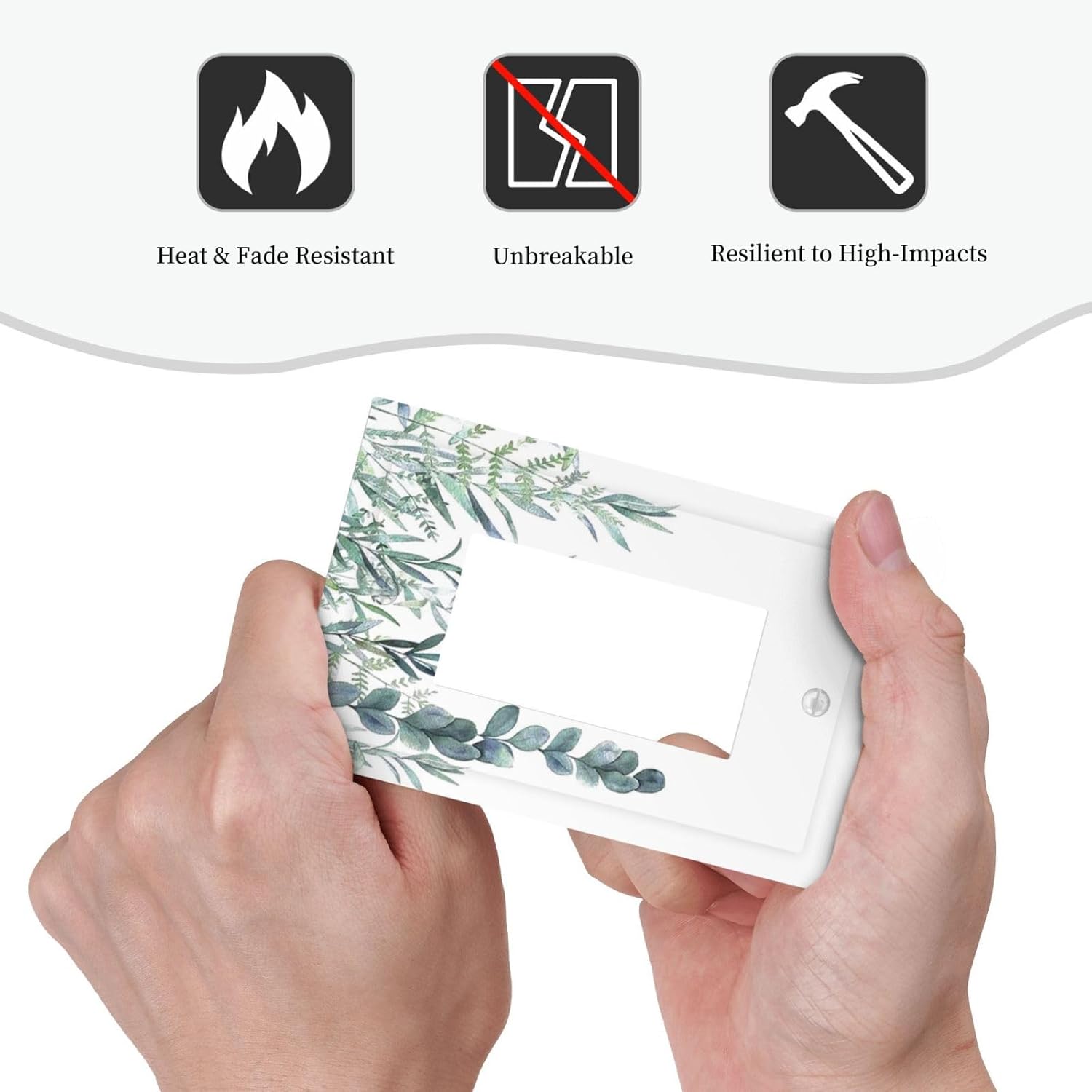 Eucalyptus Leaves Greenery Vine Flowers Simplicity Decorative Outlet Covers 1 Gang Single Rocker Light Switch Cover Plate Wall Plates GFCI Faceplate for Bed Room Living Room Decor