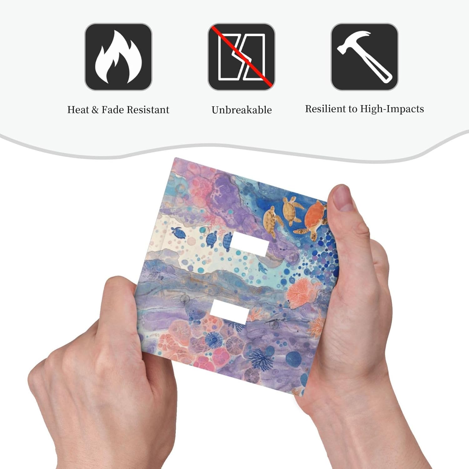 Turtle Coral Fish Watercolor Colorful Underwater World Decorative Switch Plates 2 Gang Double Toggle Outlet Light Switch Cover Wall Plate Electrical Faceplate for Kids Room Home Decor