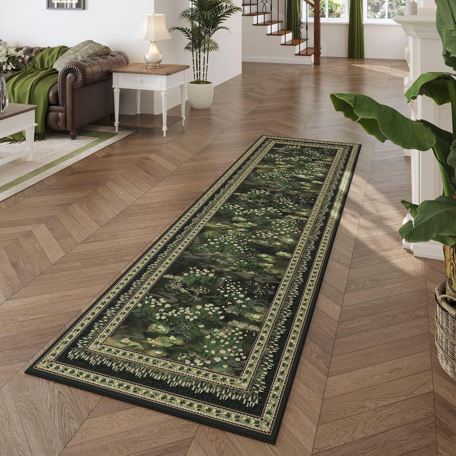 2x6 Runner Rug Impressionist-Style Vintage Kitchen Rugs Non Slip Washable Soft Carpet Runner for Kitchen Laundry Bedroom Bathroom, Green