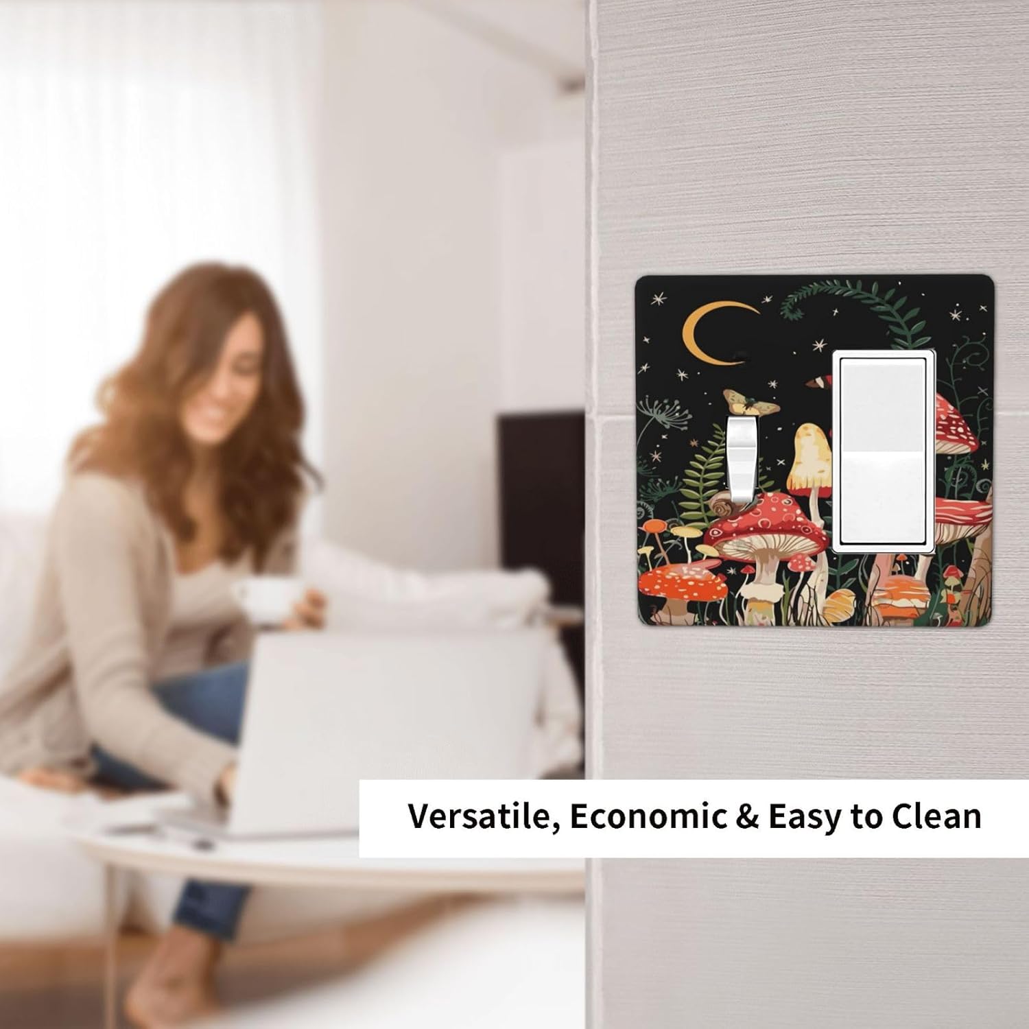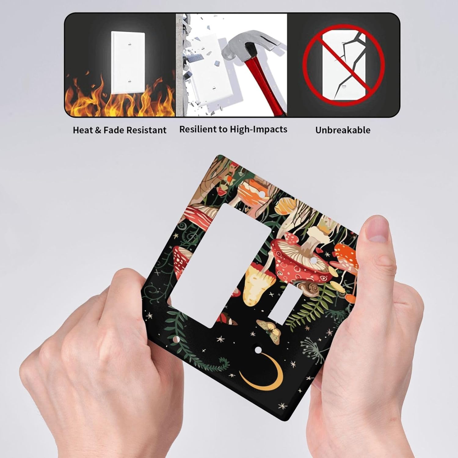 Moon Star Red Mushroom Forest Butterfly Green Plant Outlet Covers 1 Toggle 1 Rocker Combination Decorative Wall Plate Electrical Switch Plates Light Switch Cover Plate for Kids Room Home Decor