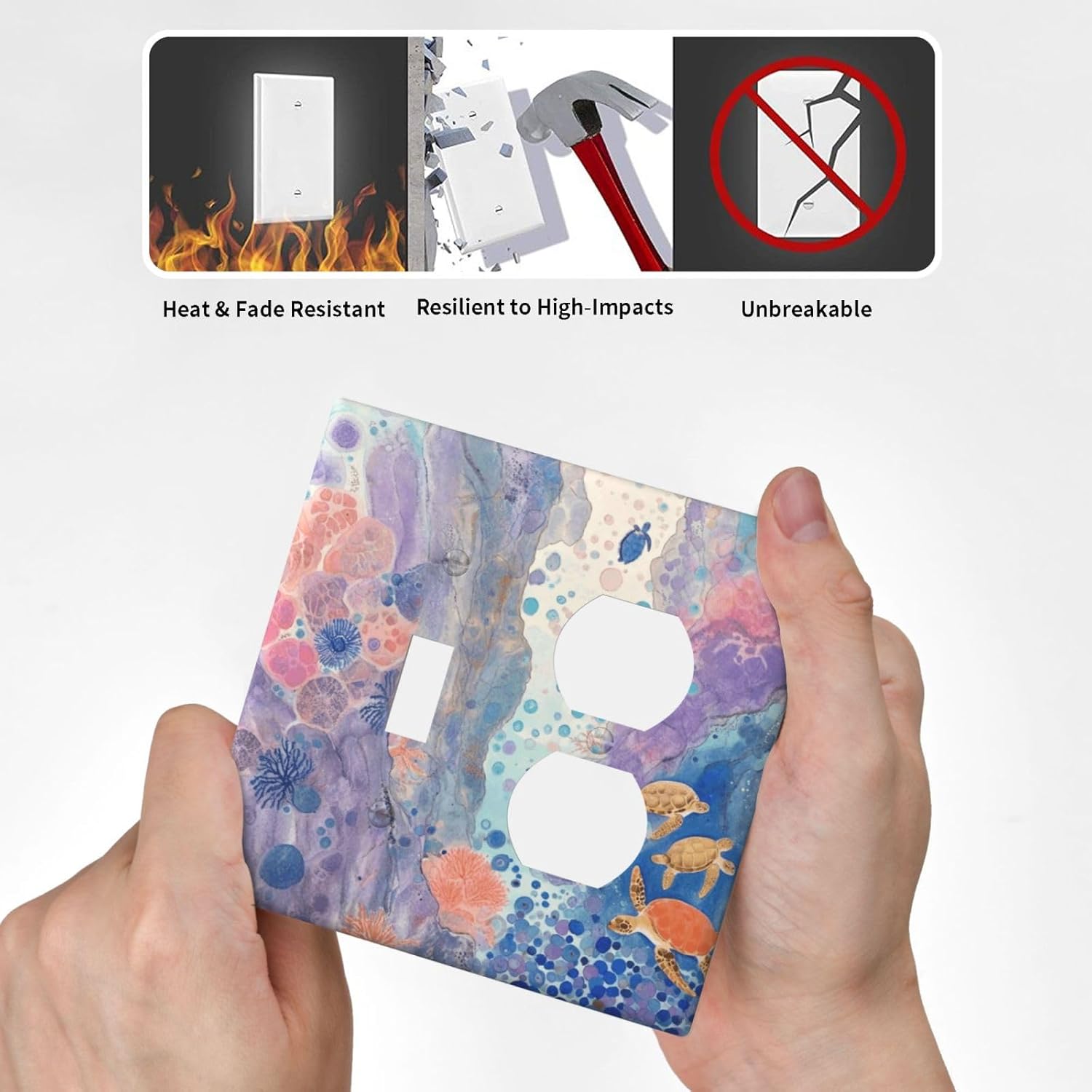 Turtle Coral Fish Watercolor Colorful Underwater World Wallplates 1 Toggle 1 Duplex Switch Plate Electrical GFCI Faceplate Decorative Light Switch Covers for Kids Room Home Decor