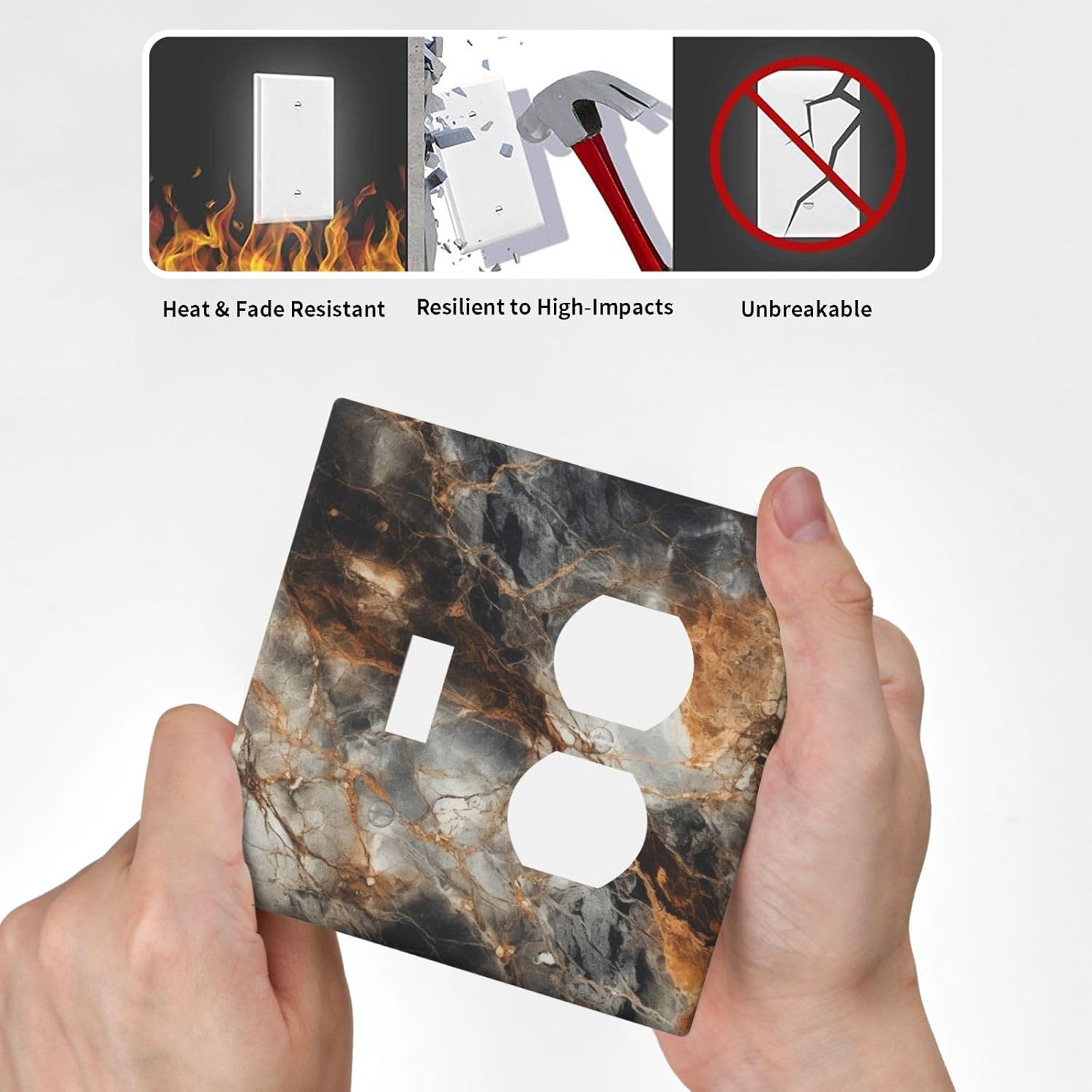 Brown Marble Granite Golden Lines Print Wallplates 1 Toggle 1 Duplex Switch Plate Electrical GFCI Faceplate Decorative Light Switch Covers for Bathroom Kitchen Decor
