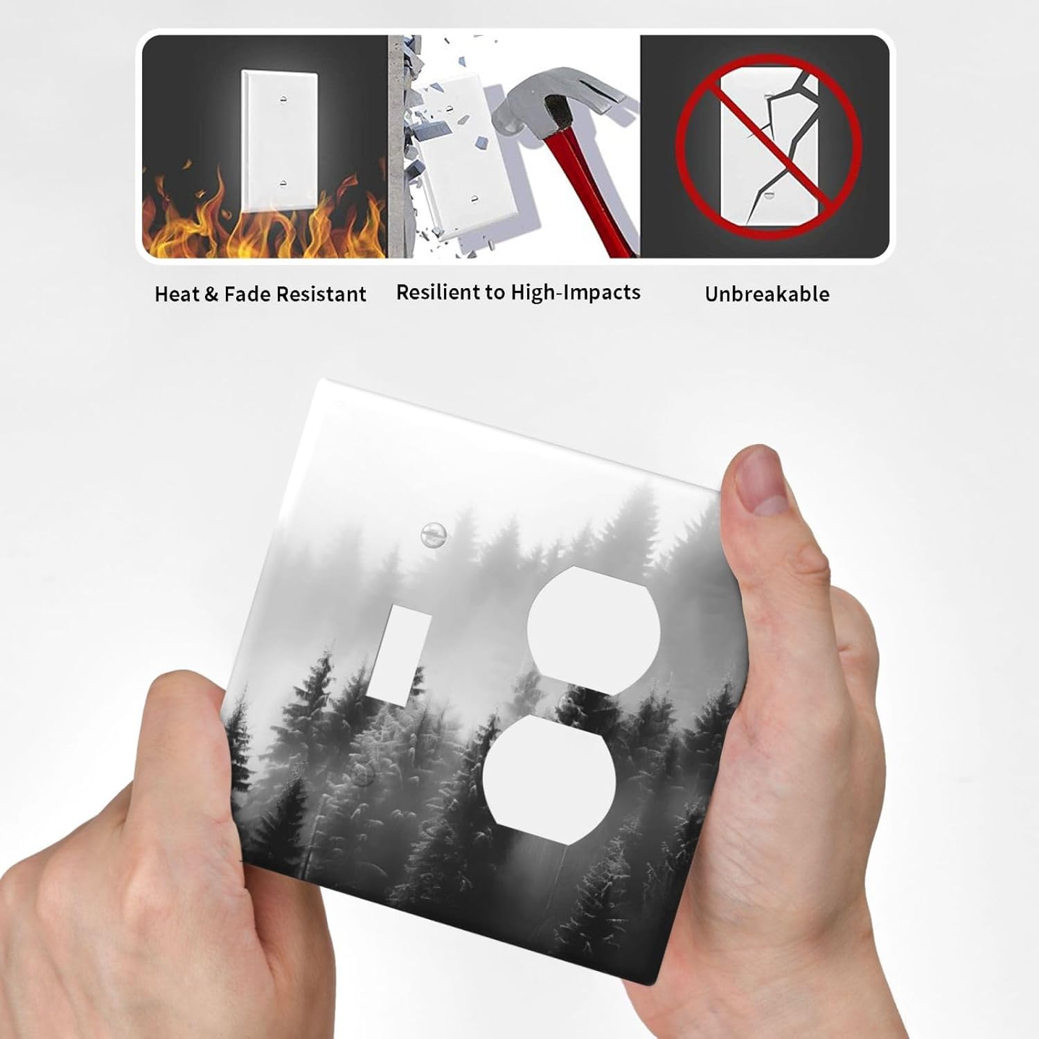 Foggy Forest Natural Scenery Retro Tree Pine Wallplates 1 Toggle 1 Duplex Switch Plate Electrical GFCI Faceplate Decorative Light Switch Covers for Bed Room Living Room Decor