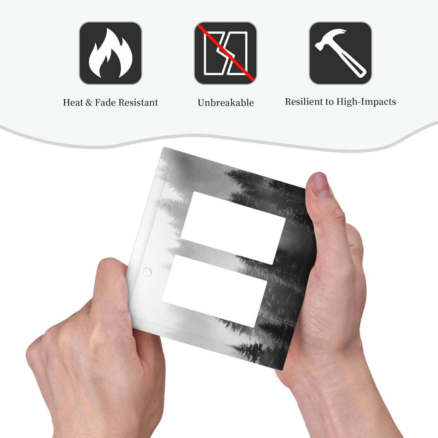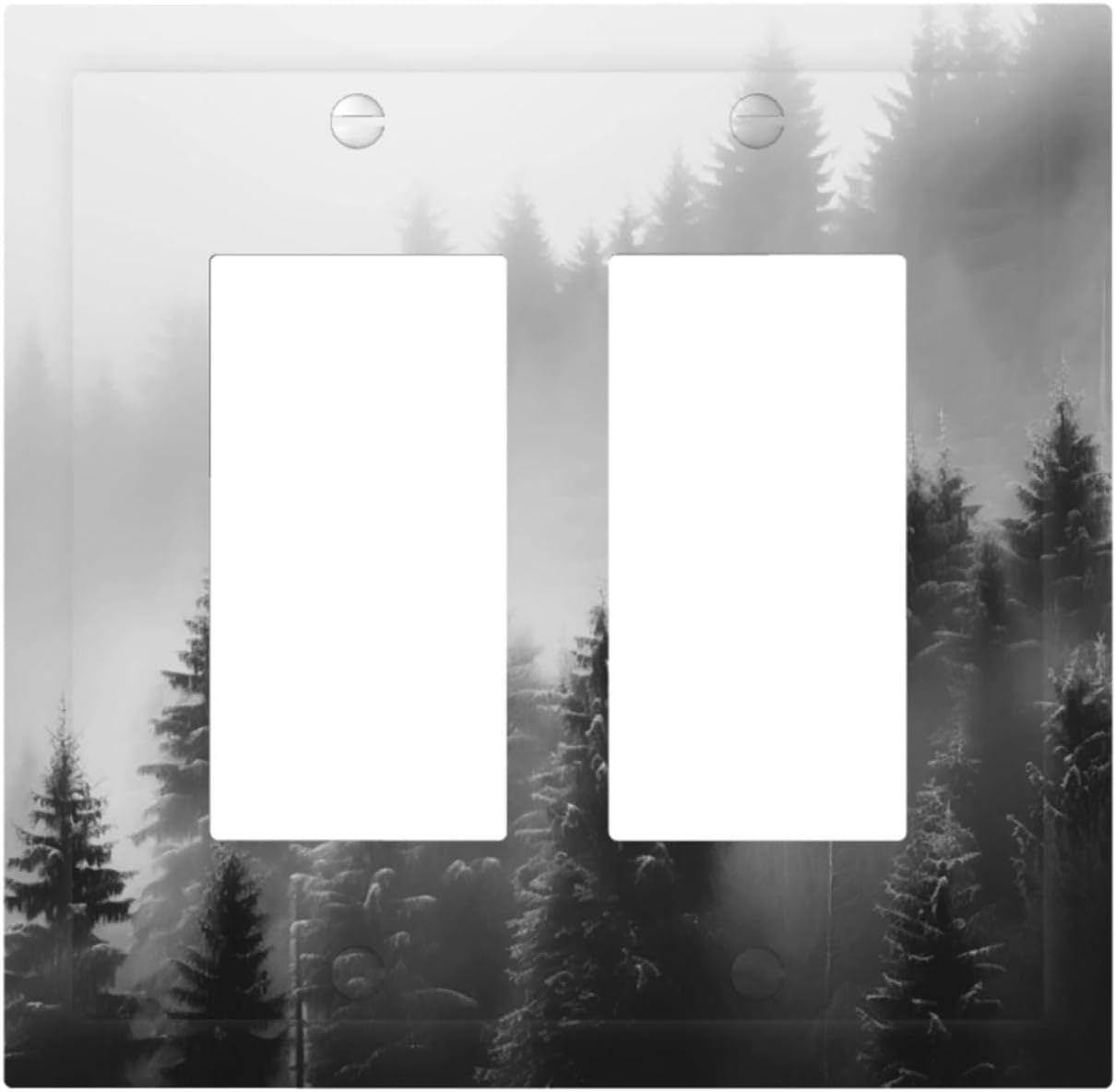 Foggy Forest Natural Scenery Retro Tree Pine Decorative Outlet Covers 2 Gang Double GFCI Rocker Electrical Wall Panels Light Switch Cover Plate for Bed Room Living Room Decor