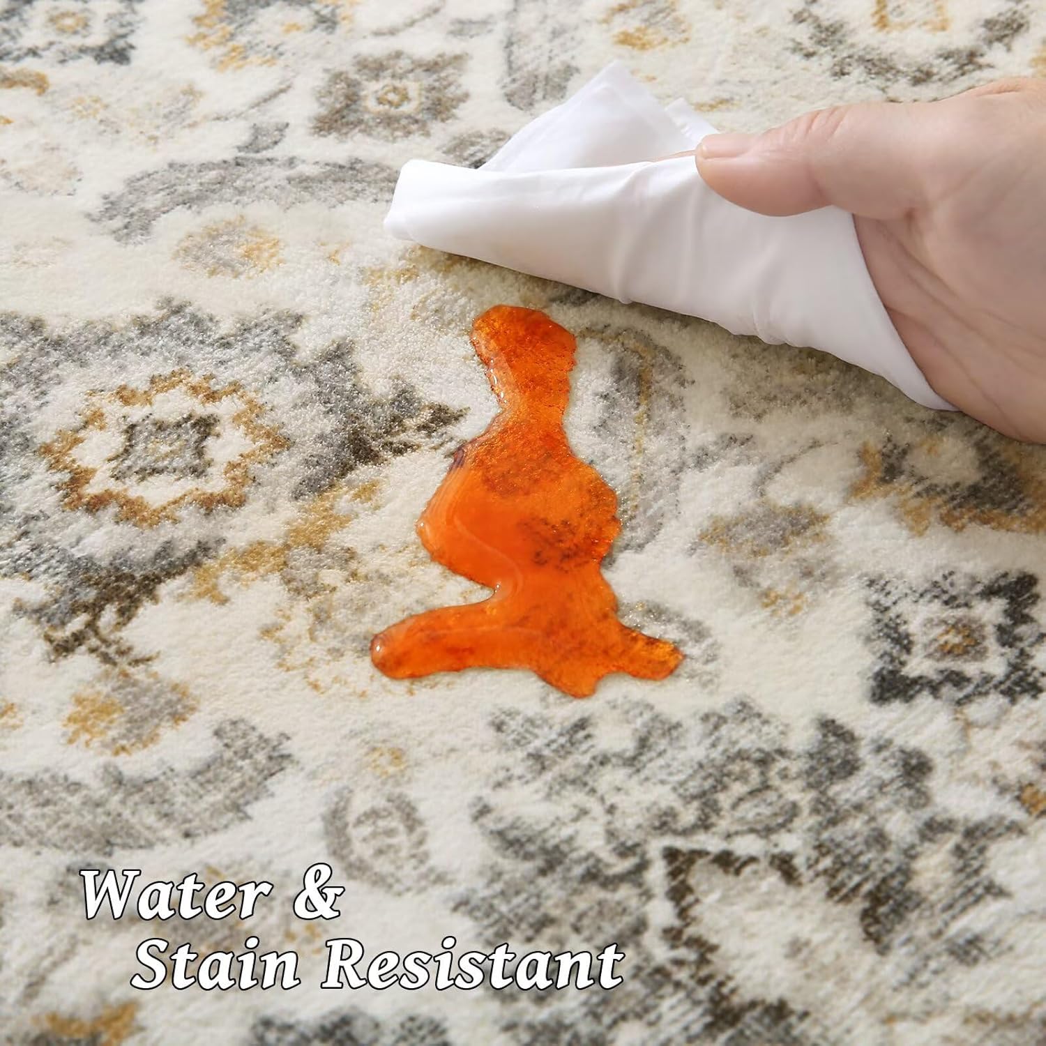 - 【Luxurious Faux Wool with Stain & Fade Resistance】- Experience high-end texture that's built to last. Our innovative permeation printing makes this area rug vividly detailed, soft faux wool pile that resists stains and fading, ensures your washable rug maintains its elegant look for years, even in high-traffic areas or washed many times.