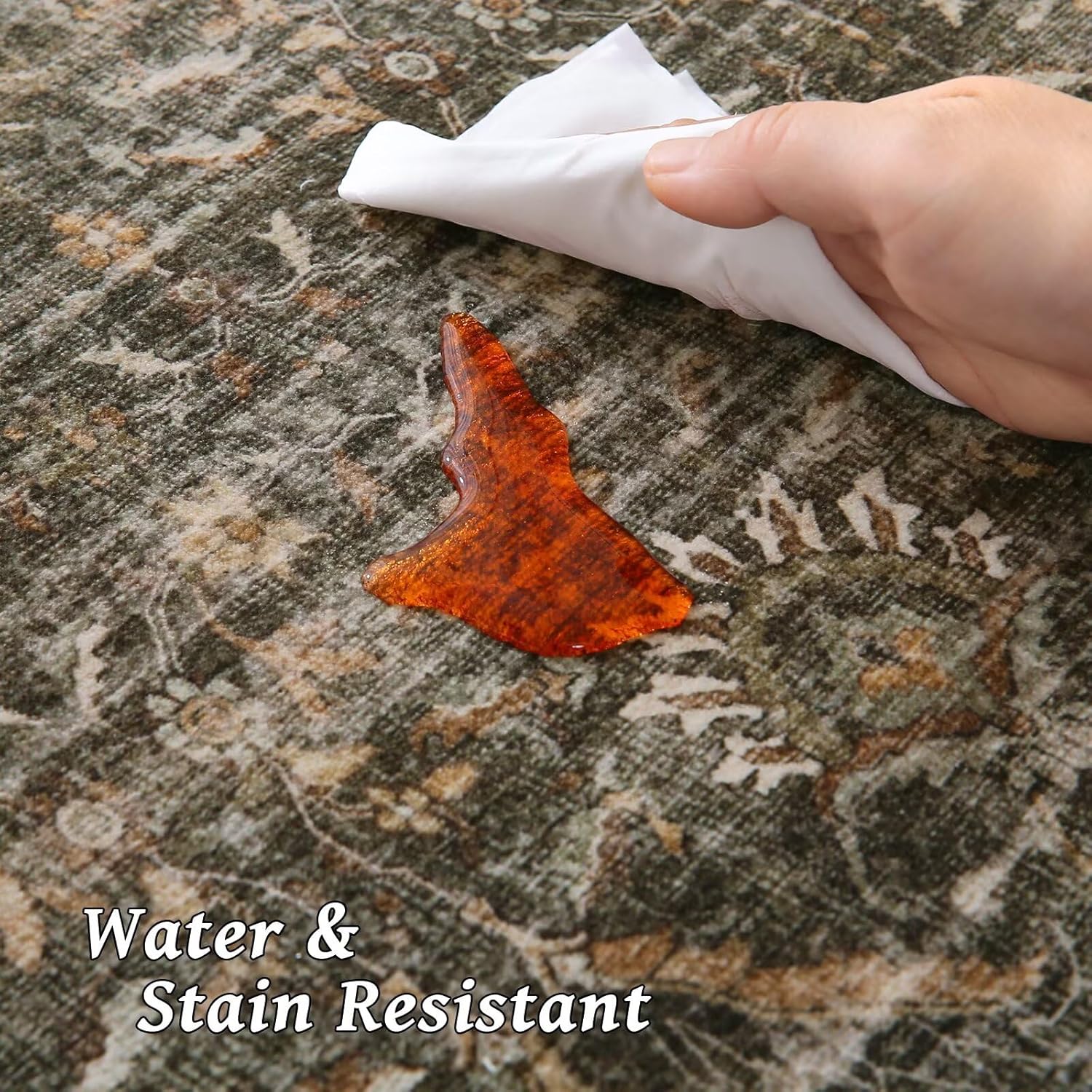 - 【Luxurious Faux Wool with Stain & Fade Resistance】- Experience high-end texture that's built to last. Our innovative permeation printing makes this area rug vividly detailed, soft faux wool pile that resists stains and fading, ensures your washable rug maintains its elegant look for years, even in high-traffic areas or washed many times.