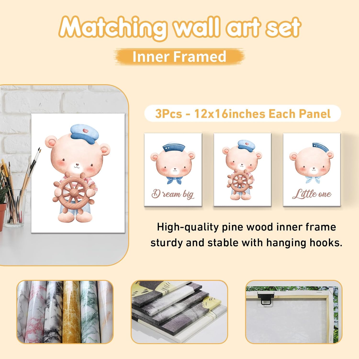 Custom Baby Bedding Set, 5 Pcs Customized Nursery Bedding Set with Name, Comfortable Double Layer Crib Sets for Boys Girls, Personalized Gifts for Infants Toddlers New Parents, Sailing Bear
