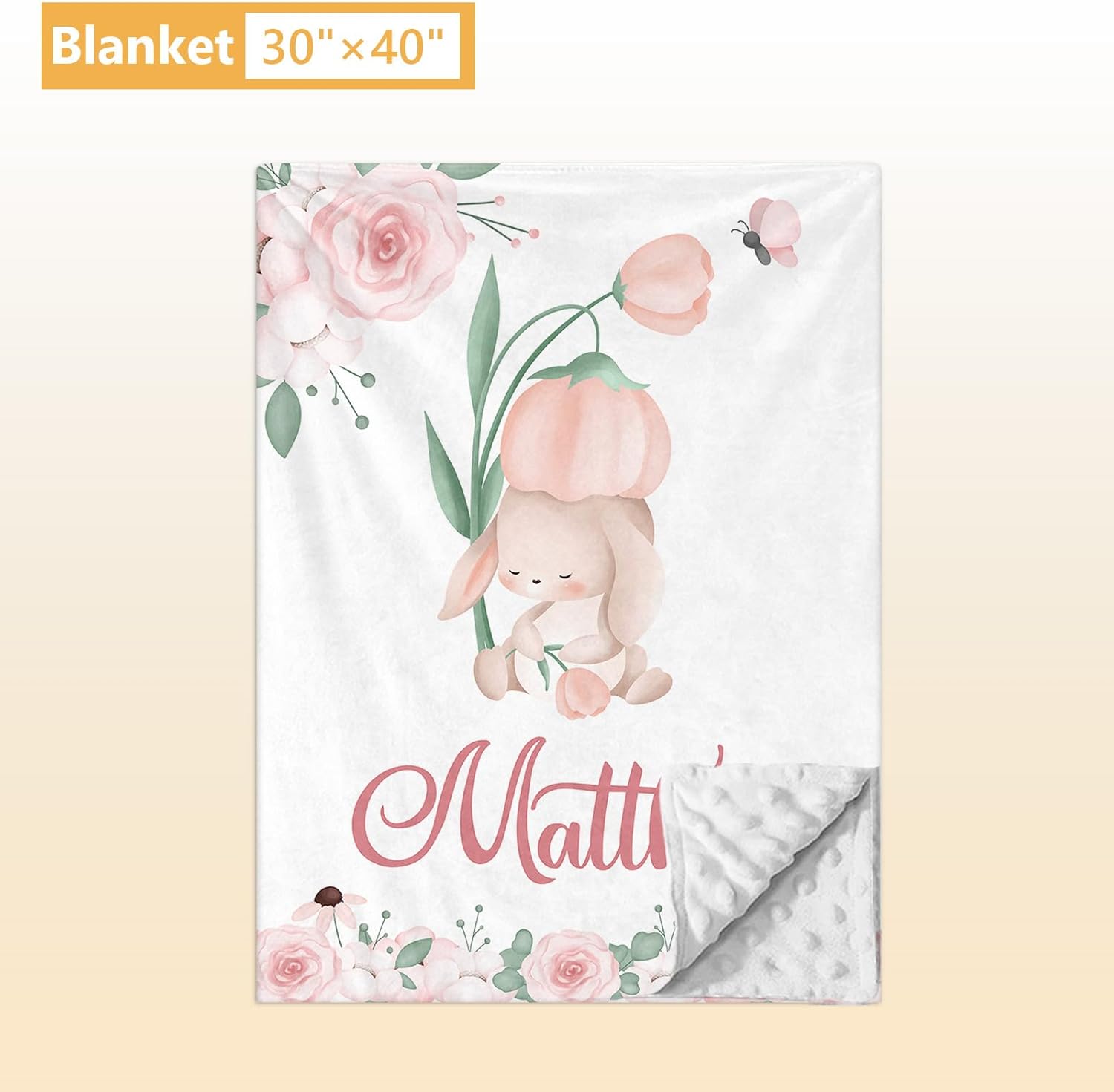Custom Baby Crib Bedding Set - 5 Pcs Personalized Name Baby Crib Set with Double Layer Blanket - Soft Tulip Bunny Nursery Bedding Set for Girls Boys - Customized Gifts for Infants Toddlers