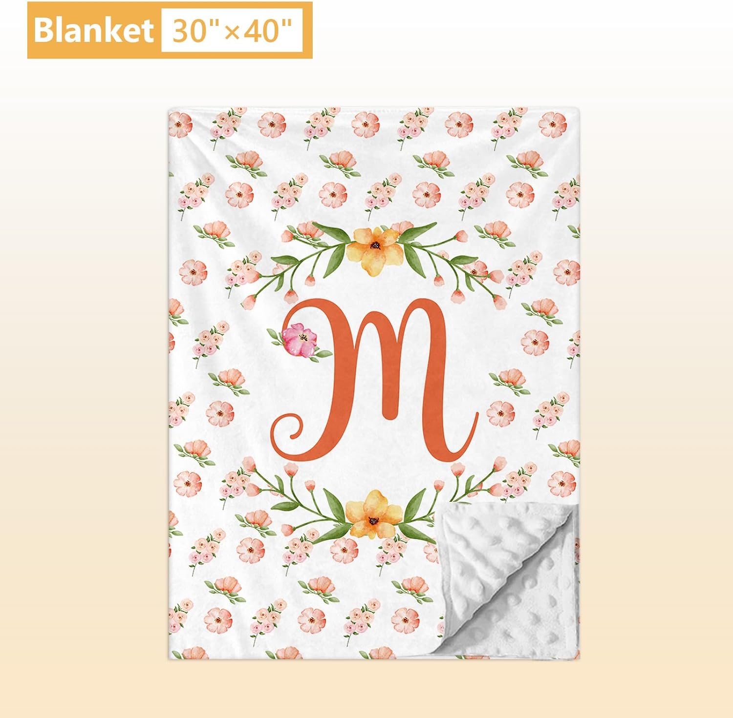 Custom Baby Bedding Set - 5 Pcs Customized Nursery Bedding Set with Name - Comfortable Double Layer Crib Sets for Girls Boys - Personalized Gifts for Toddler Infant New Parents - Orange Flowers