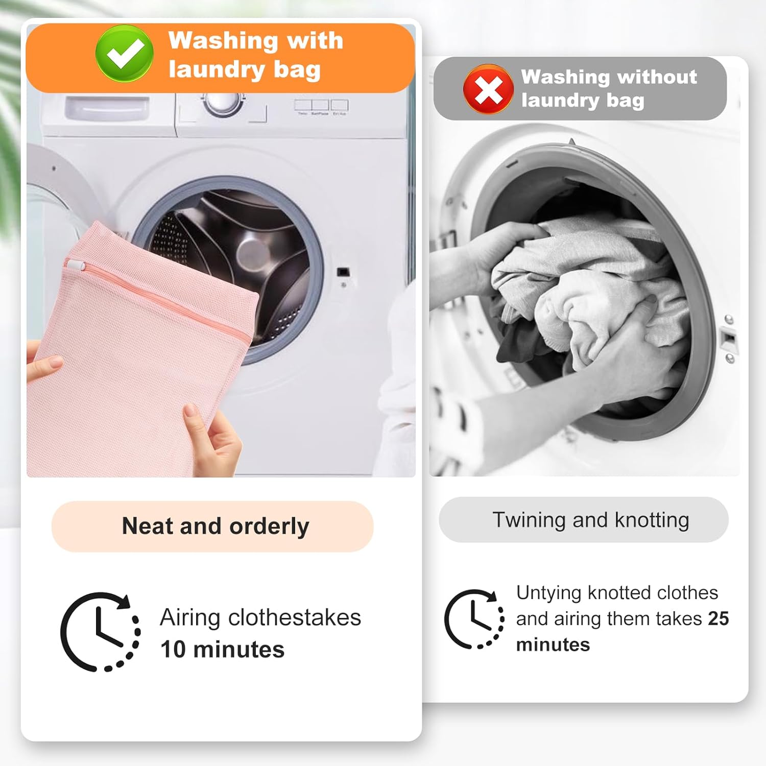 - 【Breathable Mesh, Special Zipper】Breathable mesh allows water to flow in and out smoothly, making it easy for the washer to deep clean clothes without wrinkling. The rust-resistant and durable zipper comes with a rubber band cover. You will say goodbye to zipper scratches on the washer and the opening of the laundry bag during the washing process.