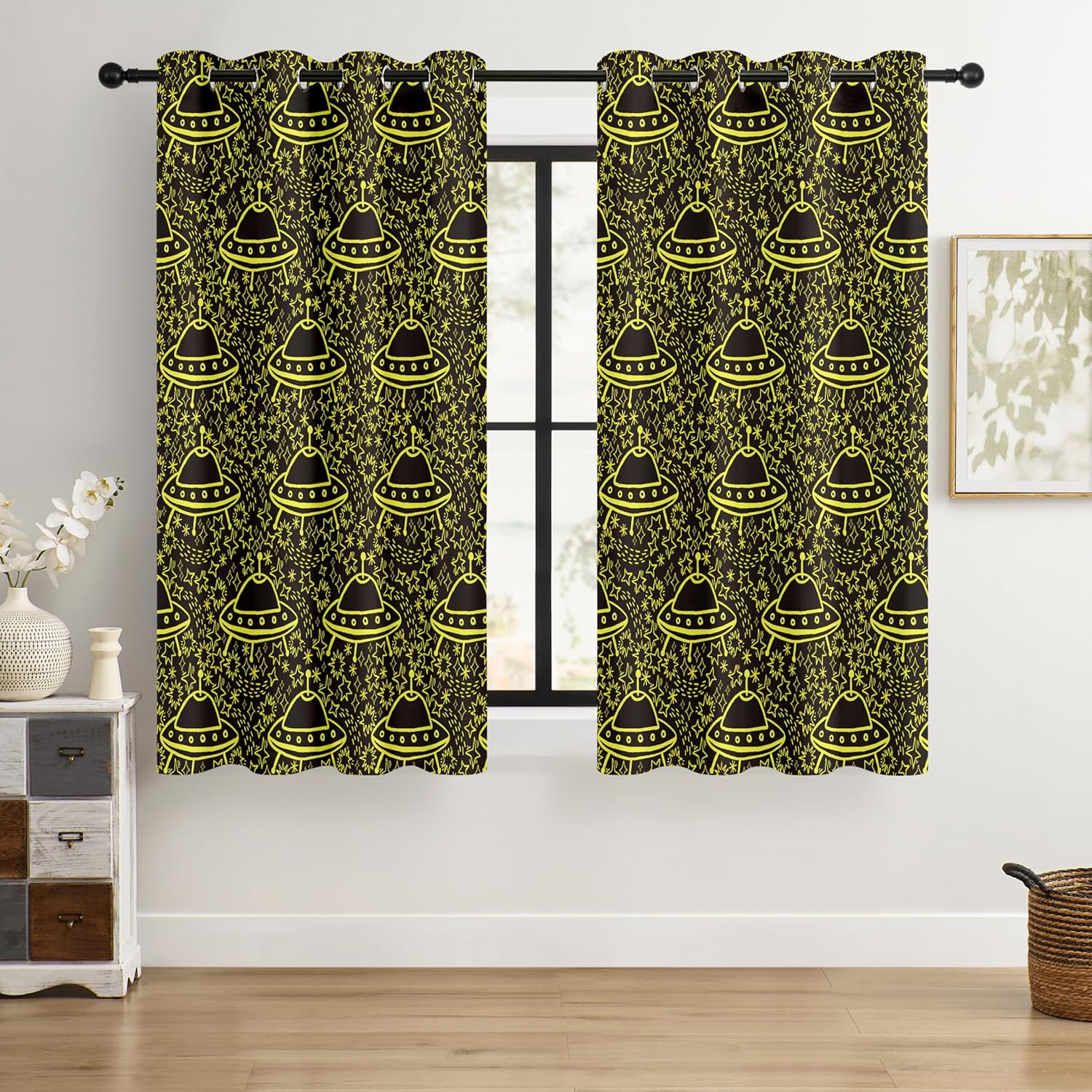 Kids UFO Blackout Curtains - 100% Blackout, Thermal Insulated, Noise Reducing, Perfect for Kids Room and Nursery, 2 Panels (Neon UFO Night, W52×L63)