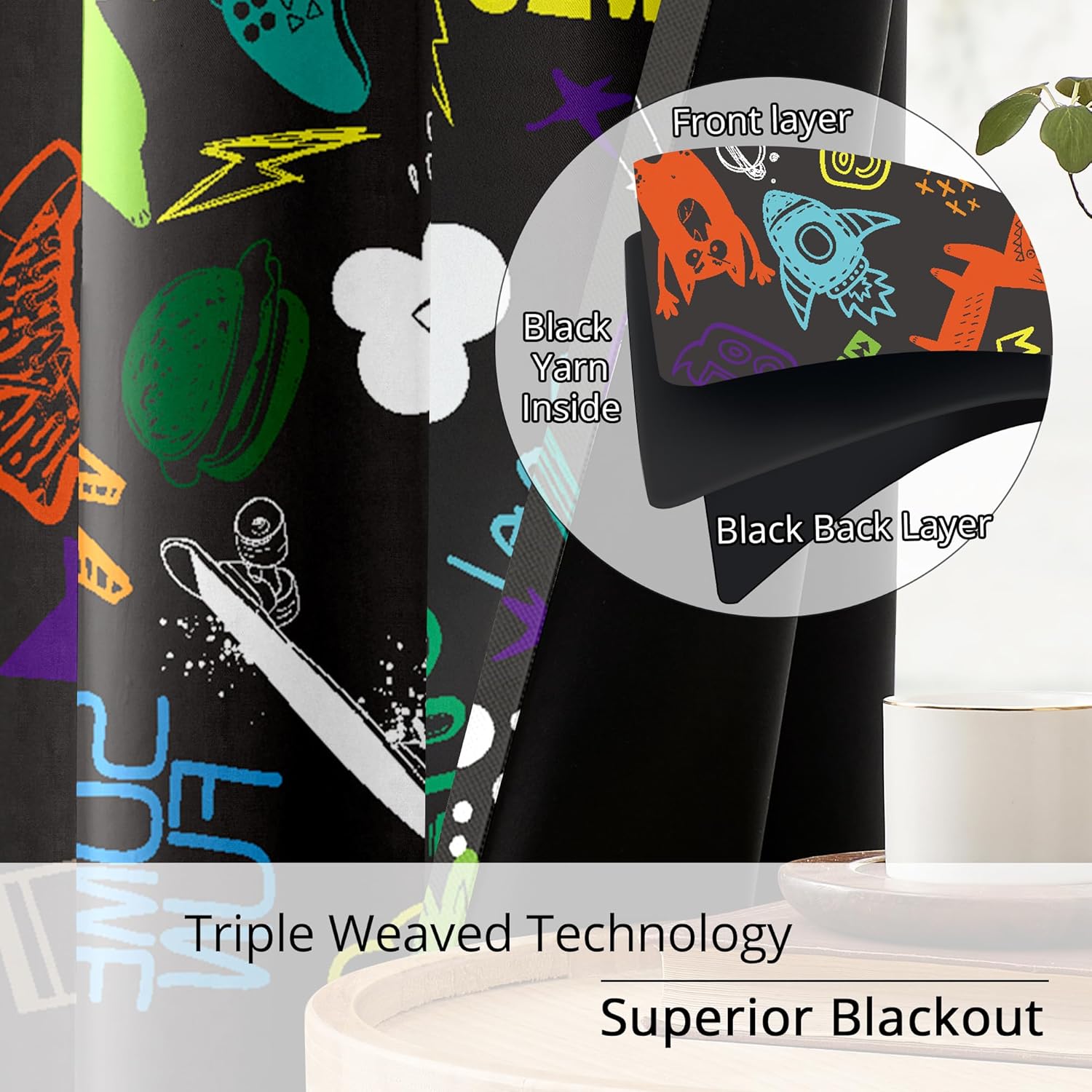 Kids Teen Graffiti Space Blackout Curtains - 100% Blackout, Thermal Insulated, Noise Reducing, Perfect for Kids Room and Nursery, 2 Panels (Graffiti Space Vibes, W52×L63)