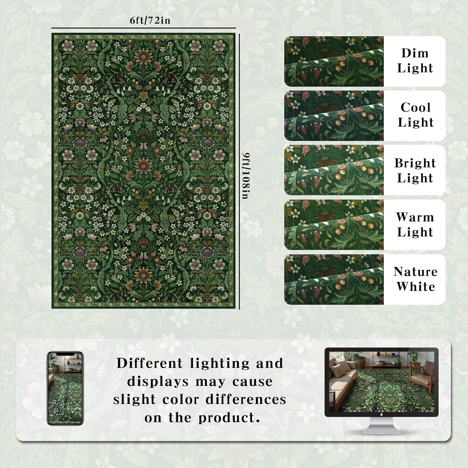 - Botanical Floral Rug: Intricate garden motifs of this 6x9 rug create natural elegance that harmonizes with both classic and modern interiors. It's ideal for living room, bedrooms, dining room, kids' playrooms or home office, injecting vibrancy and freshness into your space.