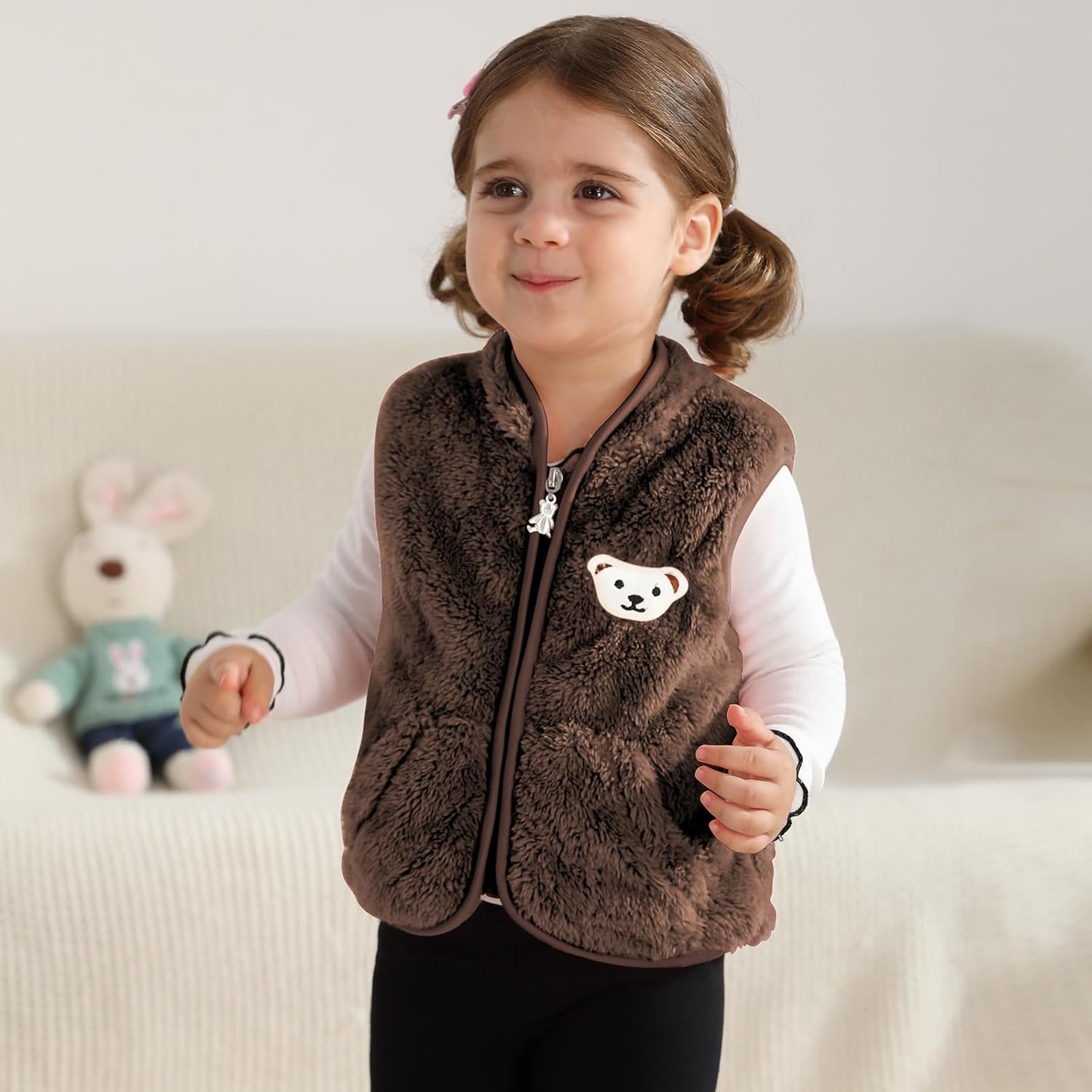 • CUTE BEAR PATTERN - As a fleece vest for cute baby toddler, the winter warm jacket is designed with very cute bear pattern.We also offer a variety of different colors to choose from, such as brown, pink, red,blue,white and more. Choose your favorite style for your baby!