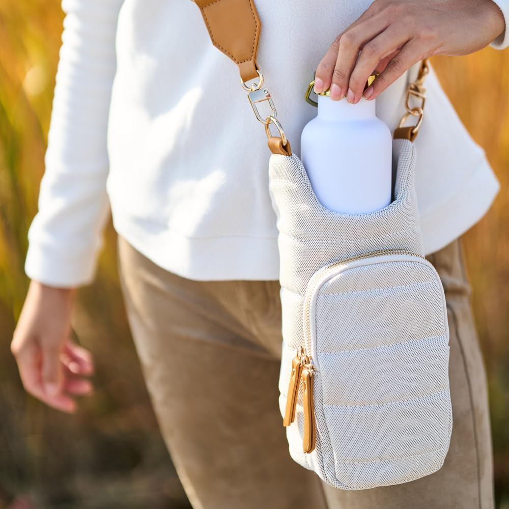 - STAY HANDS-FREE WHILE HYDRATED: The HydroBag is a stylish water bottle carrier with strap, ideal for traveling, festivals, sports events, or even walking the dog. It keeps your hands free while ensuring your bottle is always within reach.