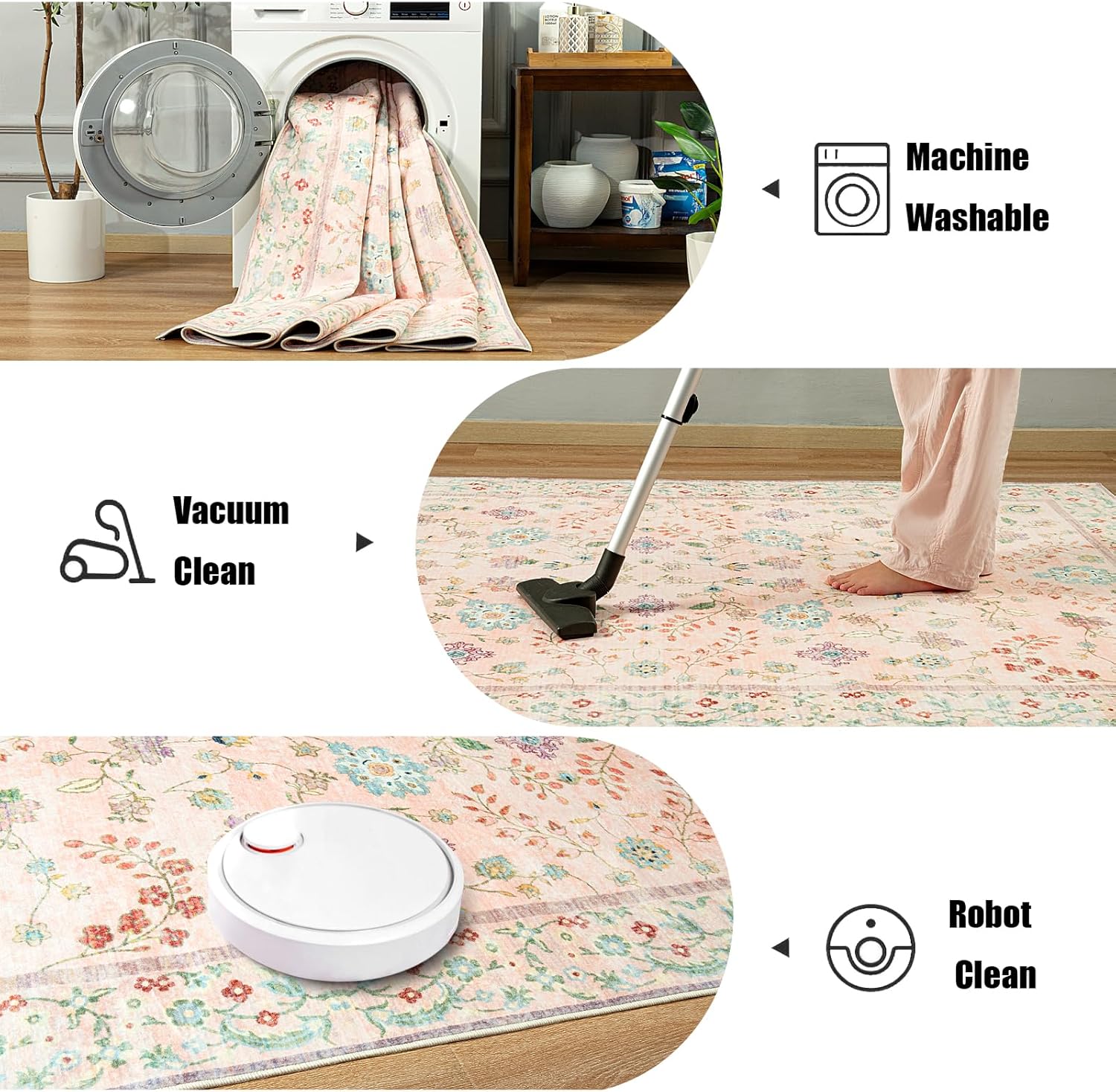 - Machine Washable Rug: Floral area rug is designed to make your life easier and will fit in with any lifestyle. Vacuum the rug regularly to keep it clean, robot vacuum are also available. For daily use, simply wash in cold water in the washing machine and then air dry. Waterproof for short periods, wiping it with a towel to clean right away. Indoor rug can be rolled to save space.