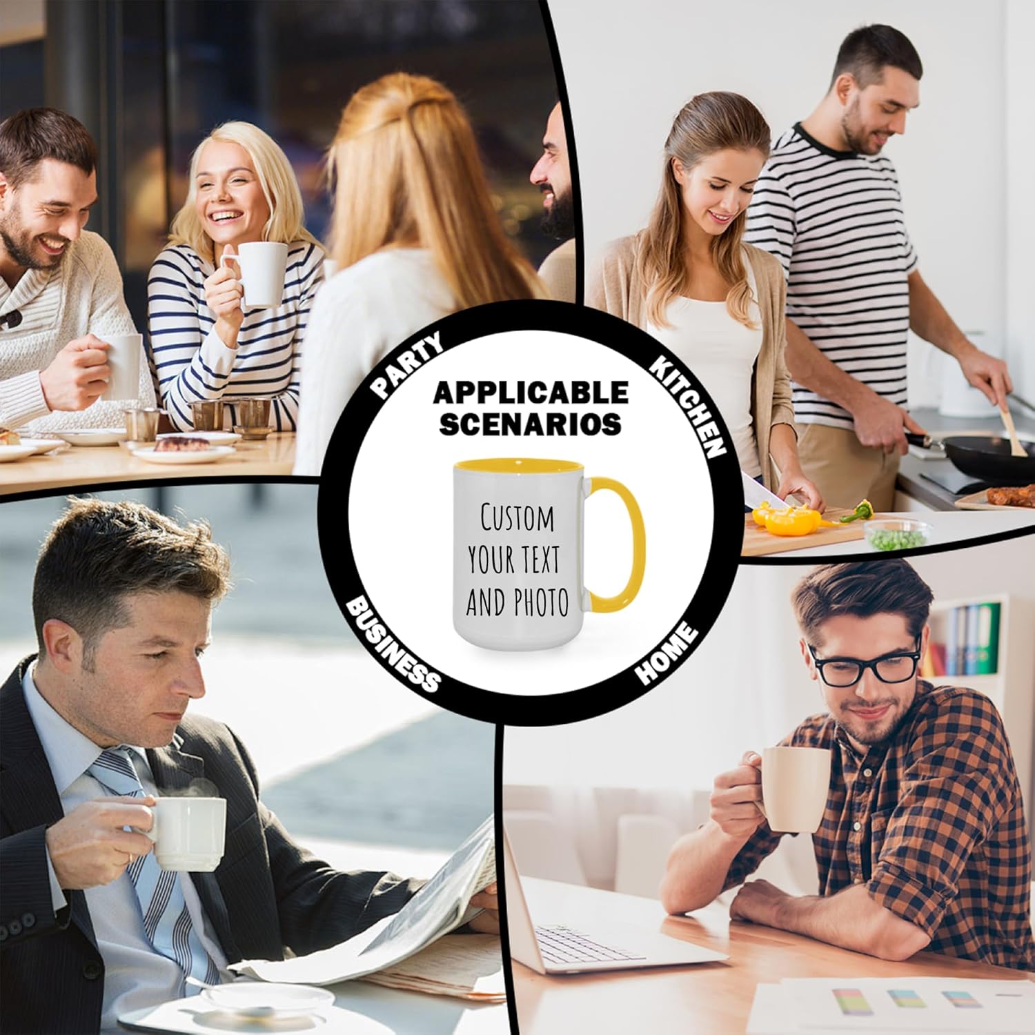 Custom Mug Upload Your Picture Personalized Coffee Mug with Photo Text Name Customized Cup Unique Ideas Gifts for Men Women Mom Dad Girlfriend Boyfriend Friend Family (Yellow, 11oz)
