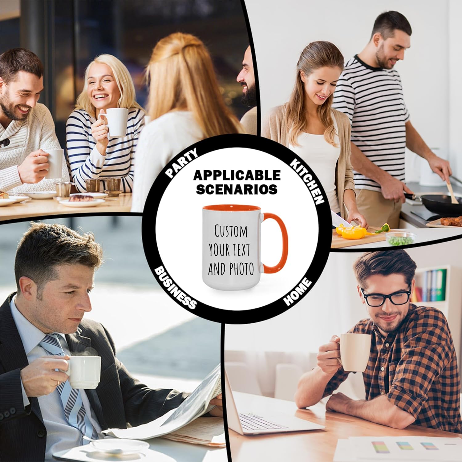 Custom Mug Upload Your Picture Personalized Coffee Mug with Photo Text Name Customized Cup Unique Ideas Gifts for Men Women Mom Dad Girlfriend Boyfriend Friend Family (Orange, 15oz)