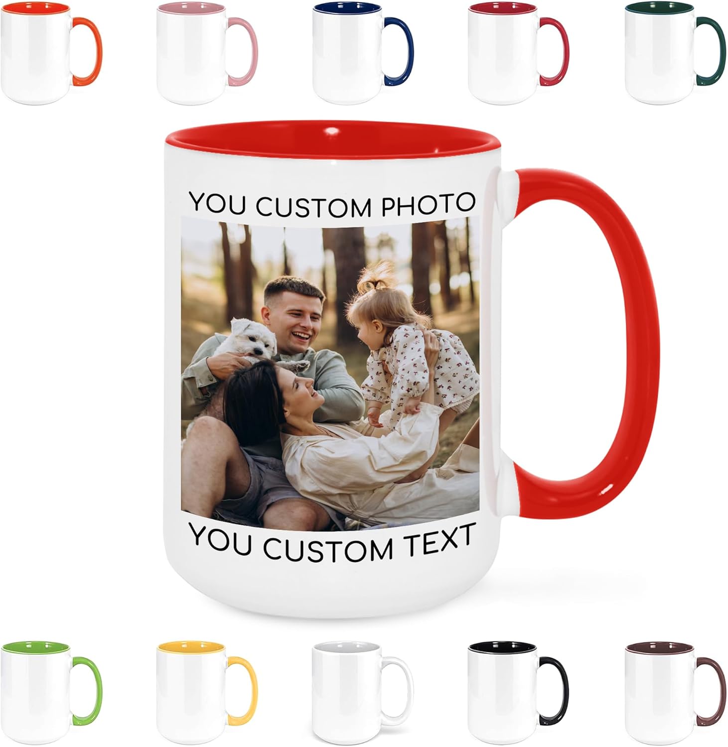 Custom Mug Upload Your Picture Personalized Coffee Mug with Photo Text Name Customized Cup Unique Ideas Gifts for Men Women Mom Dad Girlfriend Boyfriend Friend Family (Red, 15oz)