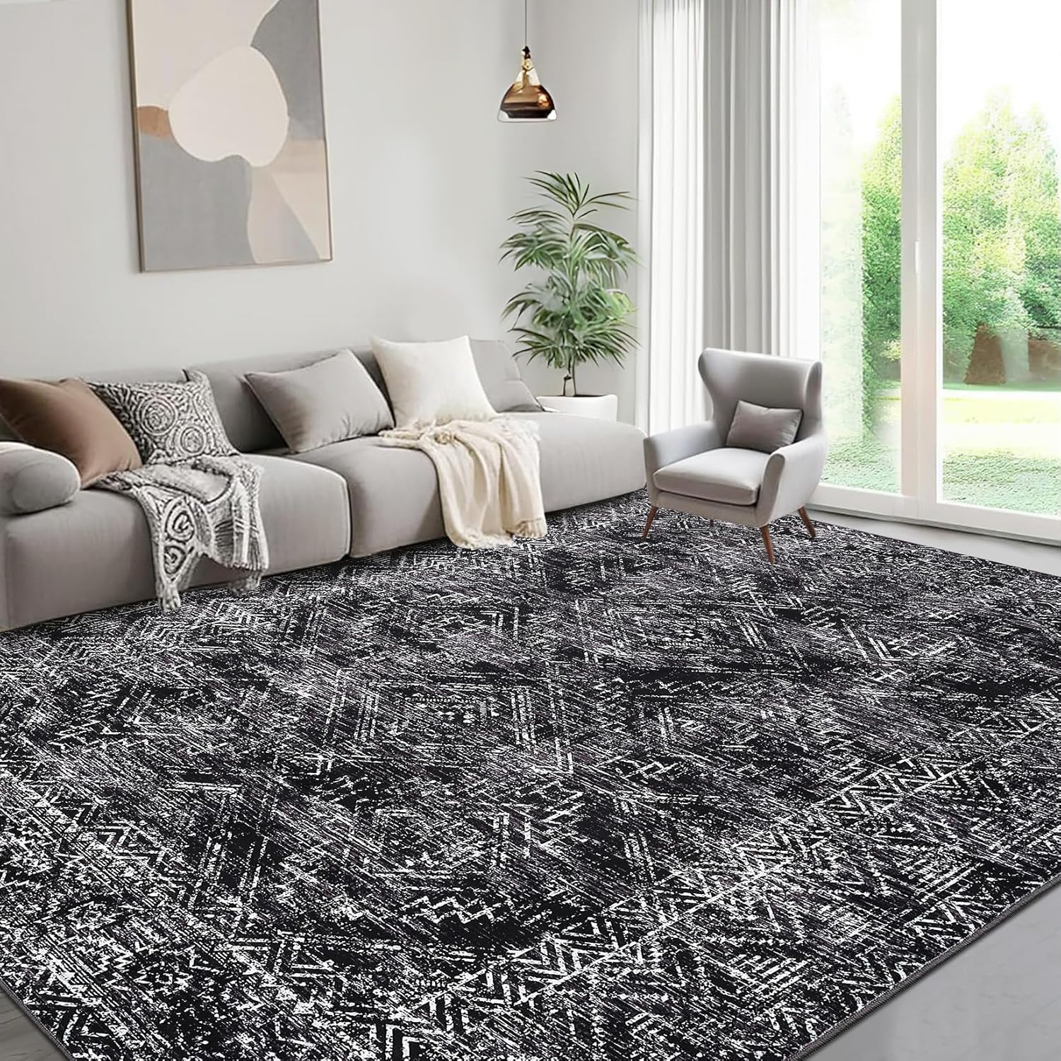 - [Machine Washable Convenience]: Designed for busy homes, this washable distressed indoor area rug is easy to care for—just toss it in the washing machine for effortless cleaning and long-lasting style
