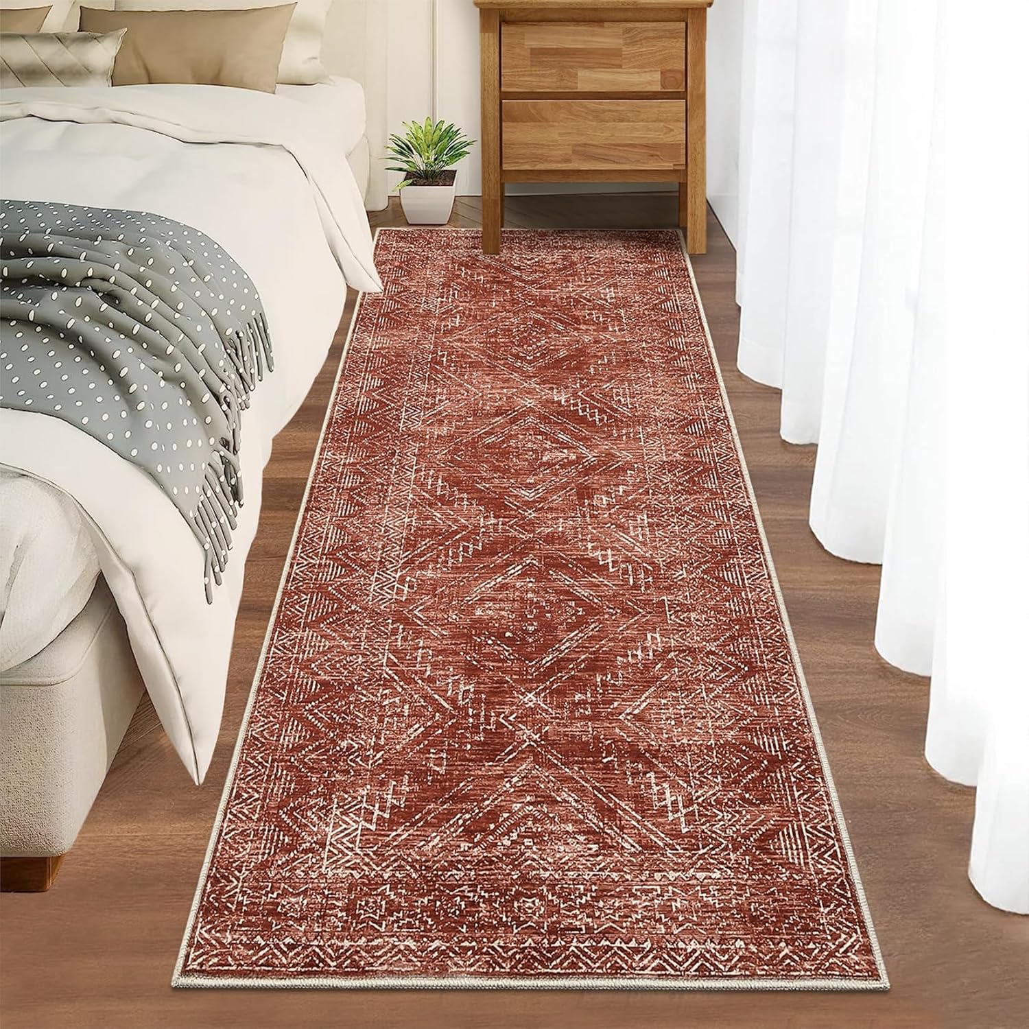 COZYLOOM 2x8 Rug Modern Indoor Area Rug Machine-Washable for Living Room or Bedroom Softness Foldable Carpet for Easy Storage Geometric Design Non Slip Rug Stain Resistant Carpet, Brick Red