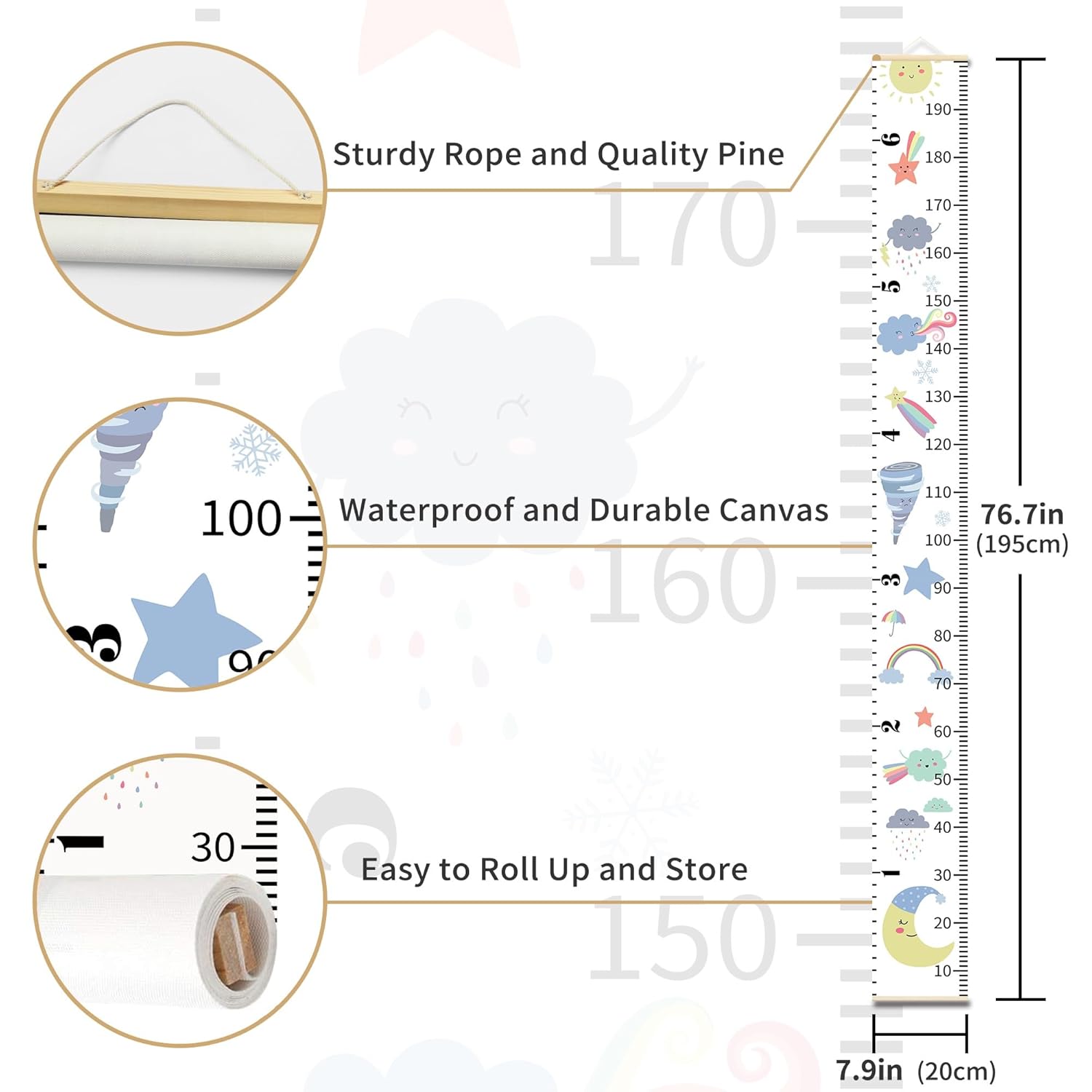 Baby Height Growth Chart, Canvas Ruler Home Nursery Wall Decor for Kids, Education Weather Icons Growth Tracker for Children Height Record, Boys & Girls Playroom Decoration