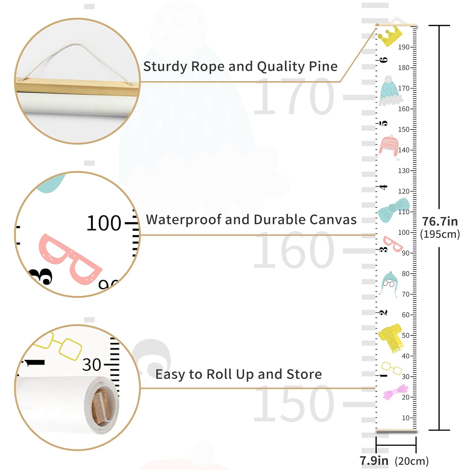 Kids Growth Chart for Wall 79"x7.9" Premium Canvas Removable Height Chart for Kids Height Measurement for Wall, Height Chart for Kids & Babies, Kids Height Wall Chart