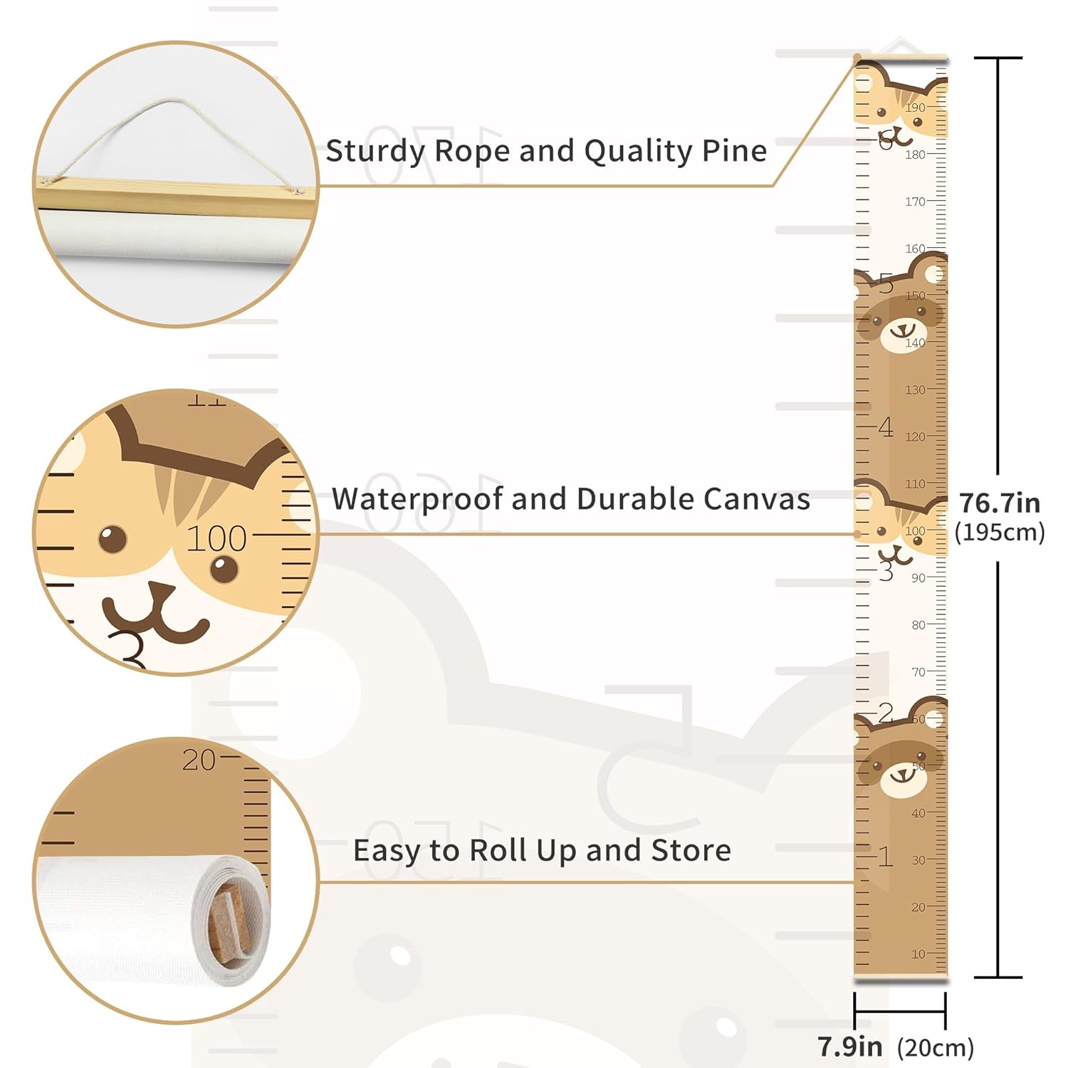 - Height Growth Chart for Kids: Canvas height chart animal pattern,size 79"x7.9"/200 cm x20 cm(L x W) work for baby toddler teens even adults.