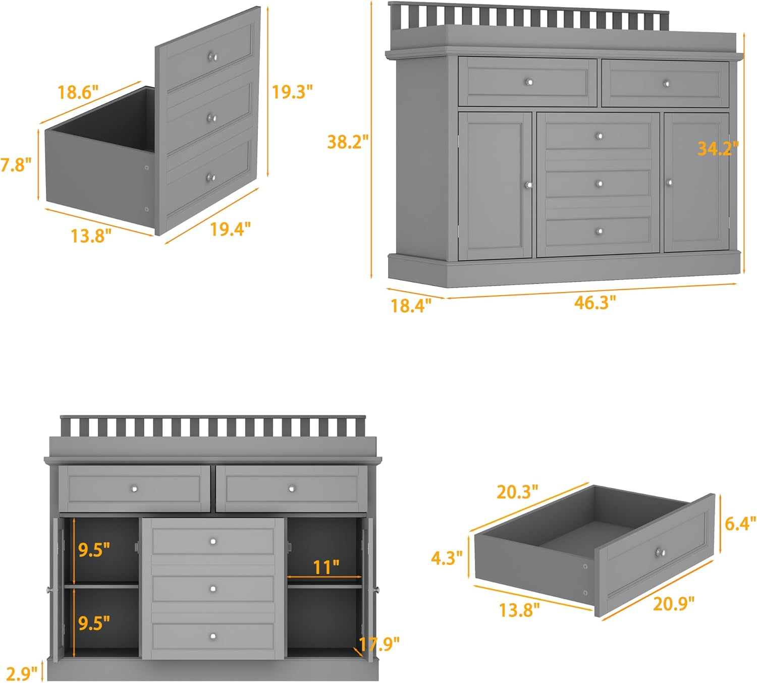 - Dresser with Changing Table - Baby dresser for nursery assembled overall dimension 46.3"W x 18.4"D x 38.2" H. Top of the dresser chest provides an appropriate height to place decor stuffs. The top guard is a detachable design, you can keep or remove it.