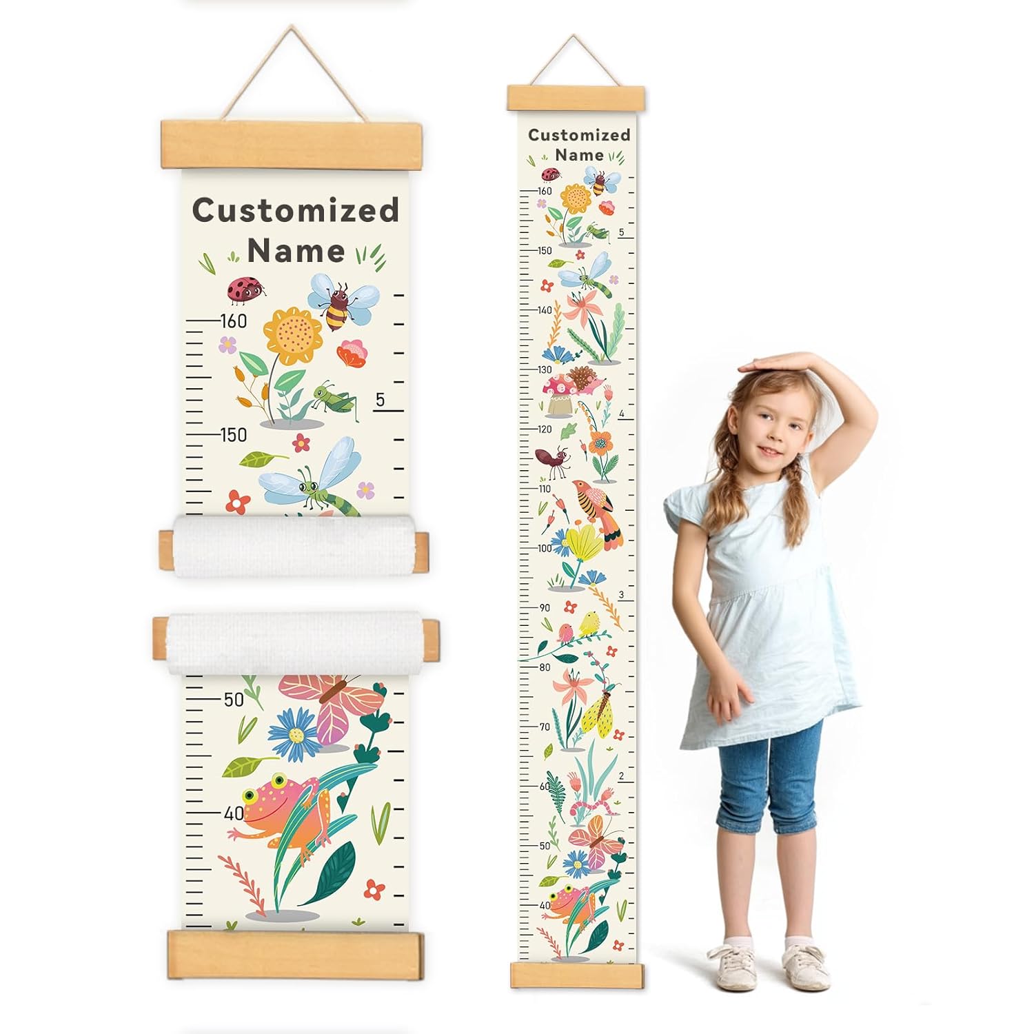 - Design: Kids growth chart with rope at the top of the chart, easy to install and removeable, foldable and portable design, easy to store, hang, roll up, transport, and save space. It boasts a material that's easy to write on, where you can use dark colored ballpoint pens and markers to track growth milestones. Our height ruler can clearly show your kids' height.