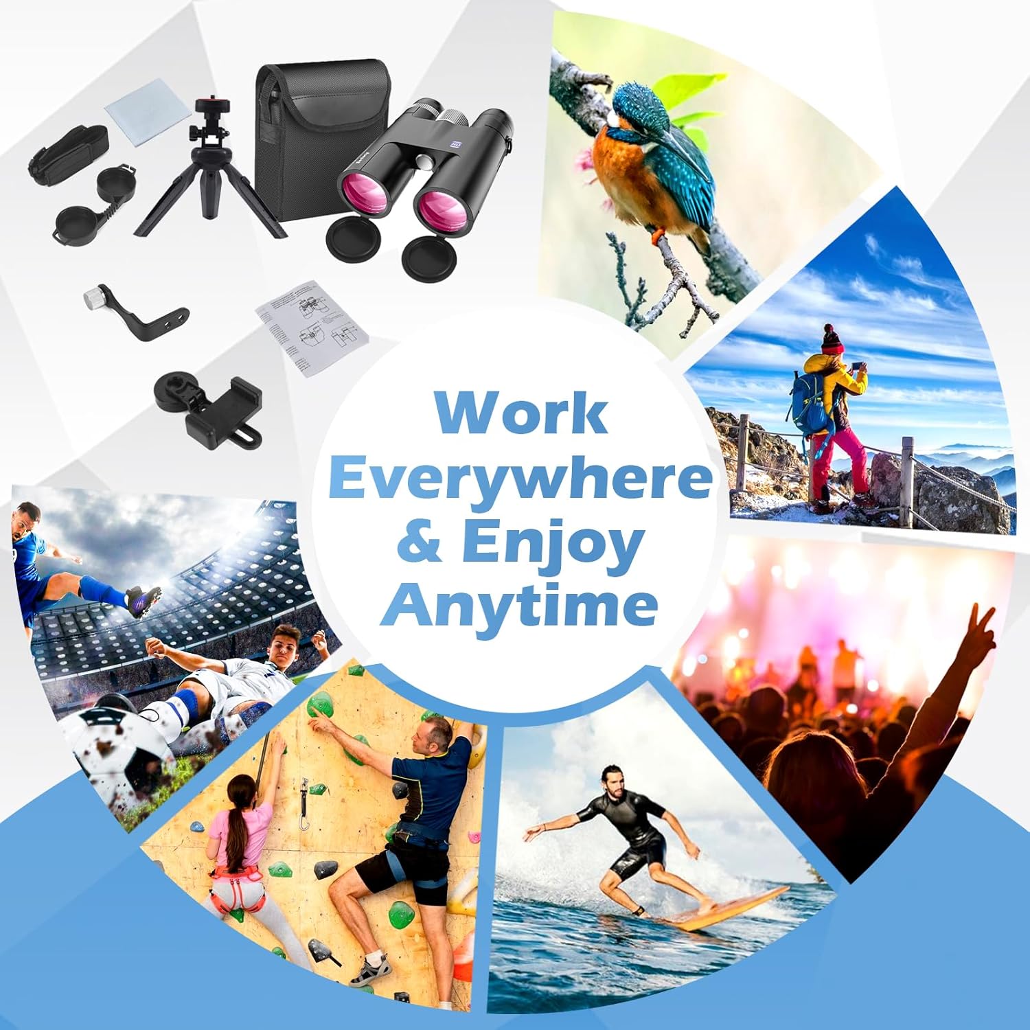 - 【Upgraded Phone Adapter, 360 Degrees Rotatable and Stable Tripod】The bird watching binoculars come with a new phone adapter and a 360° tripod so you can stabilize your phone to take clearer and more beautiful photos.Perfect for photographing quick set-up, fit for all kinds of smartphones.