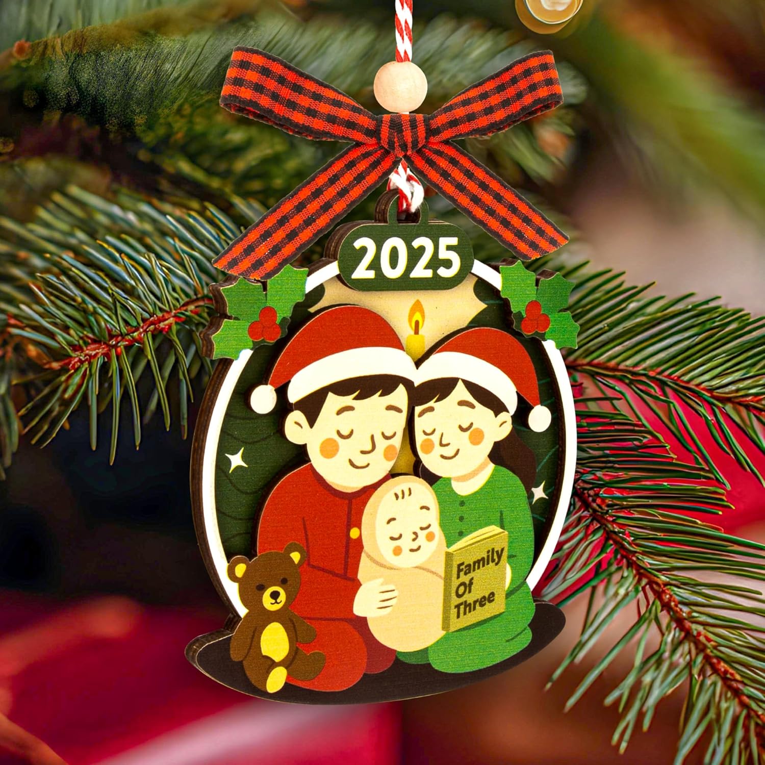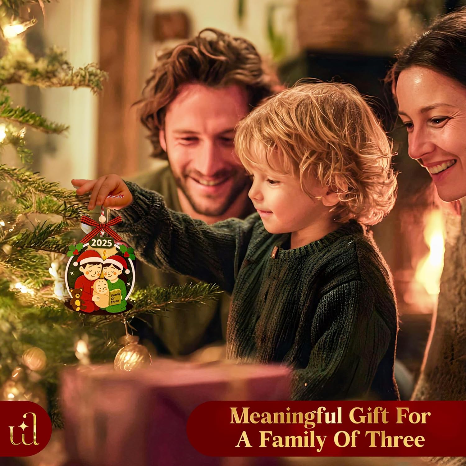 Family of 3 Christmas Ornaments 2025 - Our First Christmas As A Family of Three Ornament 2025, Unique Baby 1st Xmas Ornaments, New Parents Gifts for Mom Dad Xmas Tree Decorations