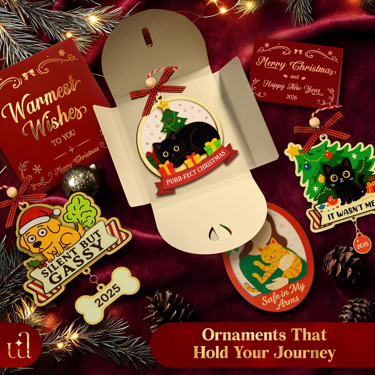 - Set Include: Each package includes one ornament with a festive ribbon and blank greeting card. A delightful choice for kitten ornament, kitty ornament, cat ornaments for christmas tree, or funny holiday ornaments.