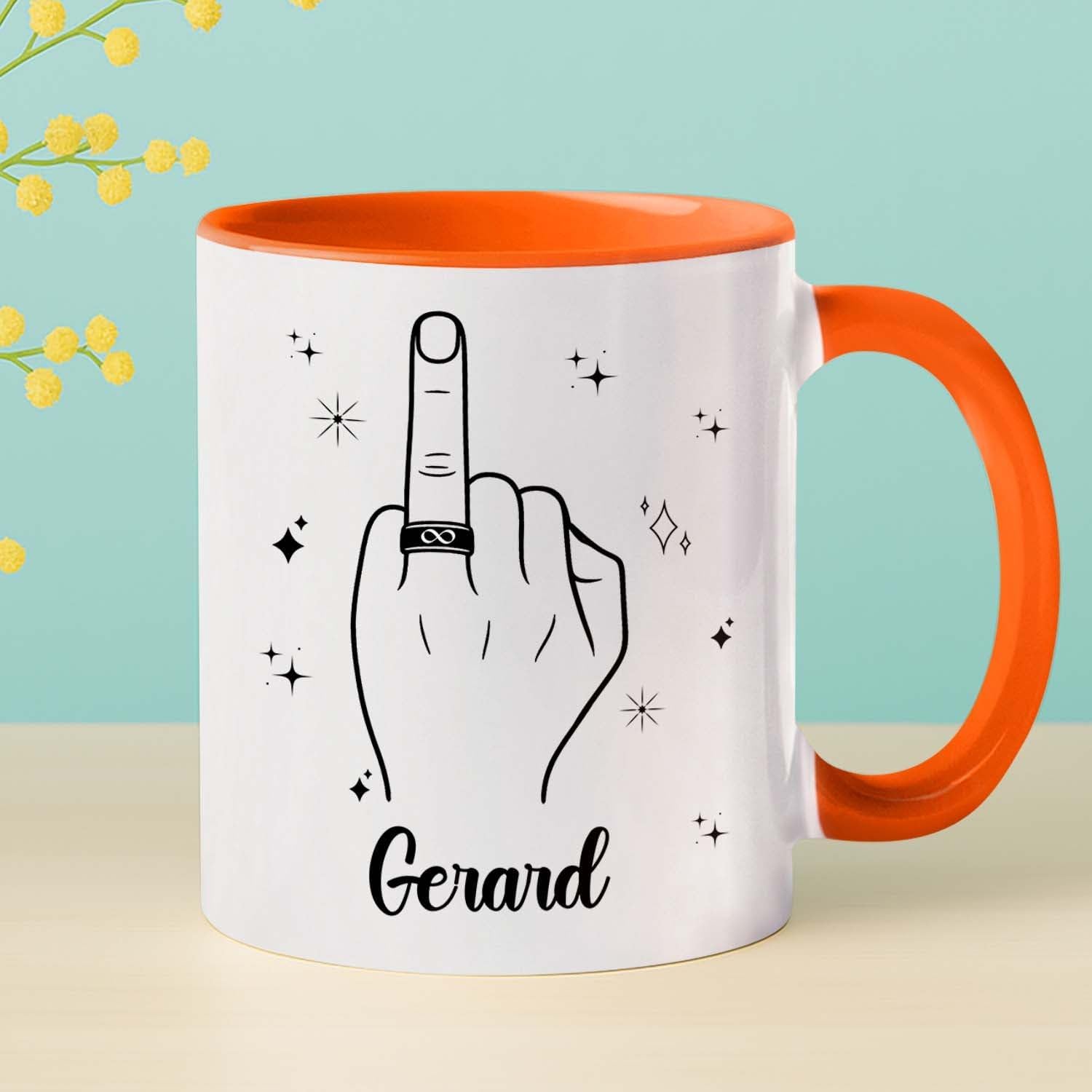 Customized Name Ring Finger Accent Coffee Mug Gift For Men Mr His Fiance Husband Groom, Ring Engaged Coffee Cup 11 Oz 15 Oz, Personalized White Mug Gift For Wedding Bridal Shower Bachelorette Party